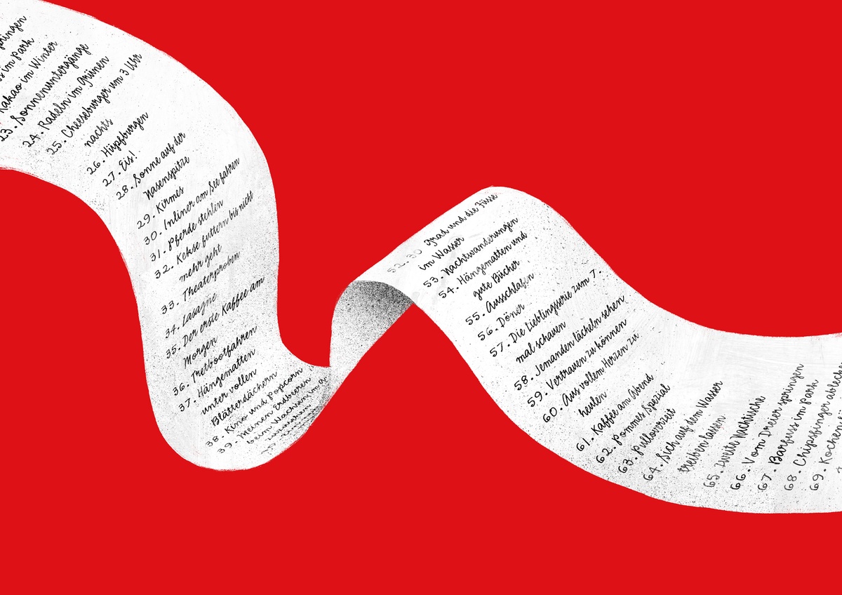 Am 09.November fing das mit der Liste an. Eine Liste mit all den schönen Dingen, die es auf der Welt gibt. Alles, wofür es sich zu leben lohnt. 1. Eiscreme 2. Wasserschlachten 3. Länger aufbleiben dürfen und fernsehen 4. Die Farbe Gelb.