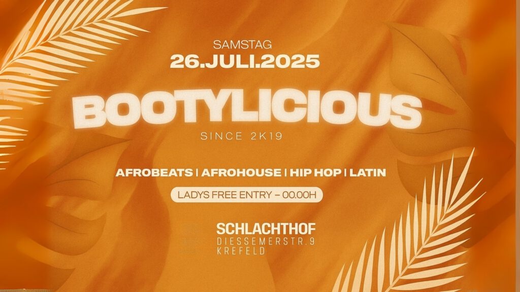 Am 26.07 freuen wir uns auf die nächste Bootylicious im Jahre 2025 freut euch den der Schlachthof Krefeld wird zur ultimativen Bühne für Hip Hop, Afrobeats, Afrohouse & Latin!