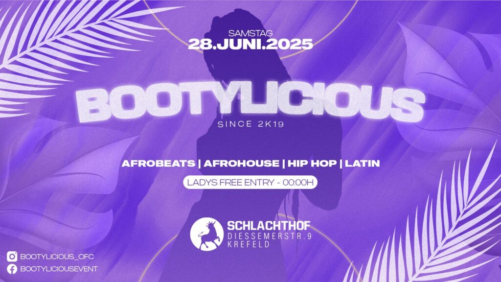 Bootylicious | Afrobeats, Afrohouse, Latin & Hip Hop | Sa. 28.06 | Schlachthof Krefeld