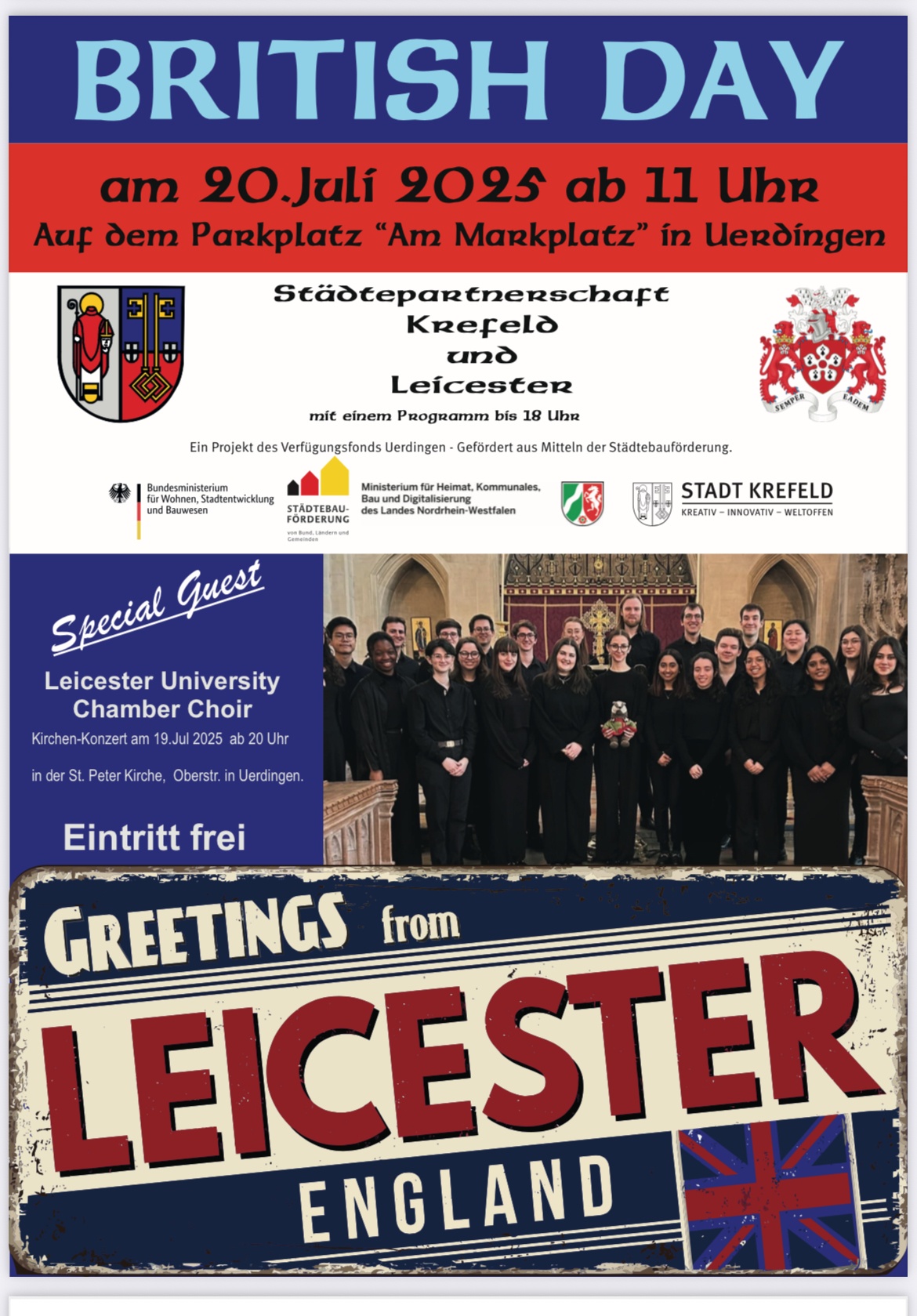 Der Kammerchor der Universität Leicester ist vom 19.7.25 bis zum 23.7.25 auf Einladung der Uerdinger Highlander zu Gast in Krefeld. Schon am 19.7.25 gibt der Chor bei einem kostenlosen Kirchenkonzert