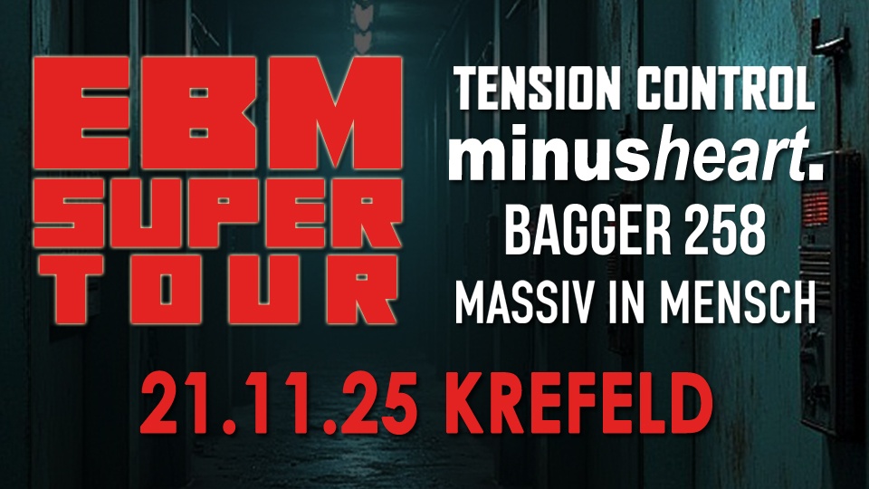 Vier außergewöhnliche Acts heizen Euch einen Abend lang mit kompromisslosem Sound ein. Neben den EBM-Old School Bands TENSION CONTROL und Bagger258 erwarten Euch mit MINUSHEART und MASSIV IN MENSCH zwei Bands, die die klassischen Grenzen des Genres sprengen und frische, innovative Einflüsse einbringen. Ob treibende Basslines, dystopische Synths oder experimentelle Klangwelten – dieser Abend ist ein Muss für alle, die die Energie der Elektronischen Körpermusik lieben und neugierig auf Neues sind.