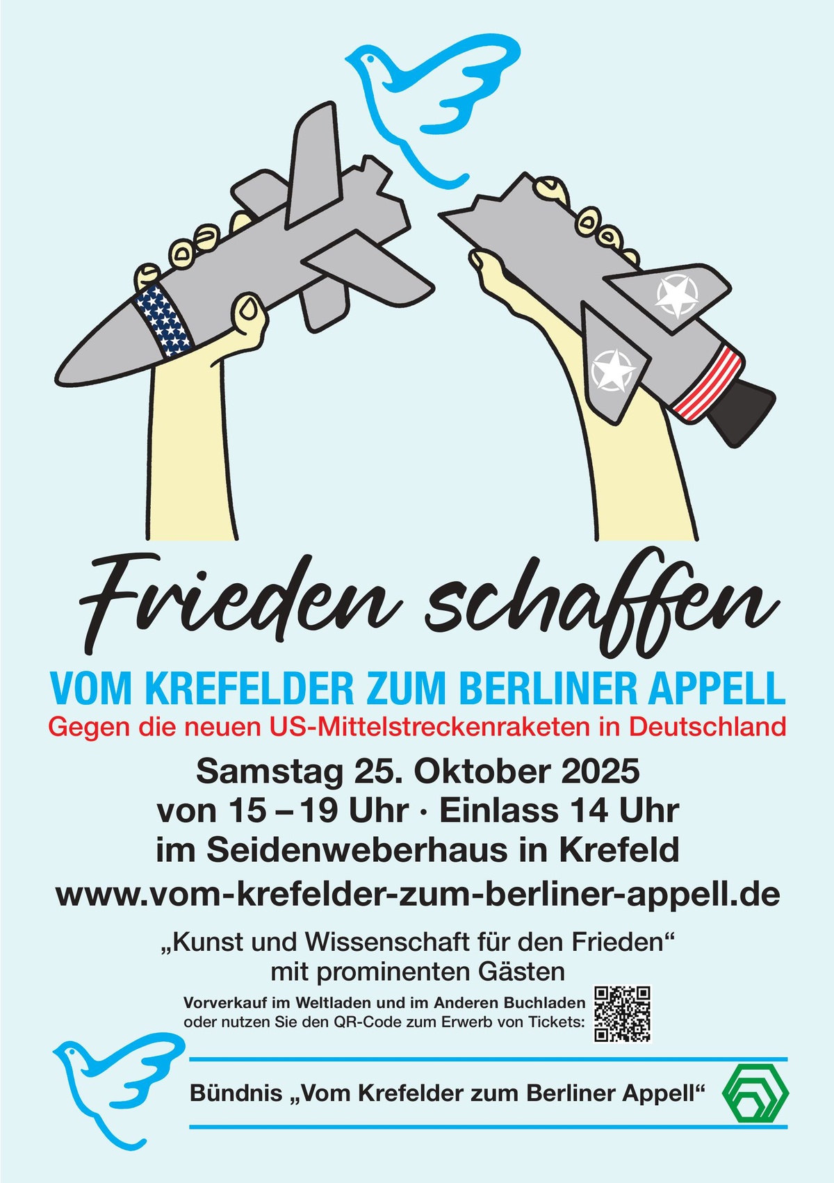 Weitere Informationen finden Sie hier:https://www.vom-krefelder-zum-berliner-appell.de im Weltladen und im Anderen Buchladen
