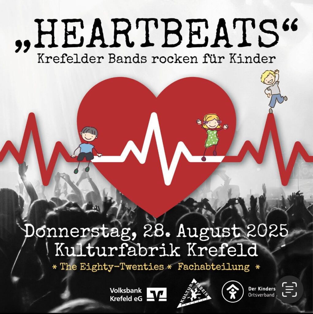 Am Donnerstag, 28. August, heißt es wieder: „HeartBeats – Krefelder Bands rocken für Kinder“! Ab 19:30 Uhr (Einlass: 19:00 Uhr) wird die KuFa Krefeld zur Bühne für ein energiegeladenes Benefizkonzert mit einer tanzbaren Mischung aus Pop, Funk und Rock.