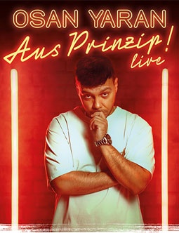 Osan Yaran liebt den Wahnsinn „Aus Prinzip!“. „Aus Prinzip!“ heißt auch das aktuelle Stand-up-Programm des extrovertierten Comedians, Ehemanns, Familienvaters und Ex-Lidl-Filialleiters. Damit tourt der hoffnungslose Idealist seit Herbst 2024 durch Deutschland, Österreich und die Schweiz! Am Donnerstag, 9. Oktober 2025, zeigt er sich im Seidenweberhaus Krefeld von seiner schlagfertigen Seite. Der extrovertierte Komiker thematisiert den Wahnsinn des Alltags und packt das Publikum mit seiner Energie, seinem Blickwinkel und seine spitzen Pointen. Mit perfektem Timing spricht Osan Yaran darüber, dass man Klischees mit Humor begegnen muss, weshalb Teenager ein schwarzes Loch für Nahrungsmittel sind und warum Frauen auch gerne mal pupsen dürfen. Am Ende wird sich herausstellen, ob Osans Alltag Wahnsinn ist oder doch eher sein Blickwinkel. In seinem neuen Programm „Aus Prinzip!“ reißt er die Zuschauer mit in seine Welt, gewährt tiefgründige Einblicke in seine Person und sorgt natürlich für einen unterhaltsamen und urkomischen Abend. Osan Yaran ist Sieger zahlreicher Comedy-Preise. 2019 gewann er den hoch angesehenen Publikumspreis beim „Stuttgarter Besen“: „Das Publikum im Saal ehrt den Comedian Osan Yaran mit dem Gerhard-Woyda-Publikumspreis, der verstaubte Vorurteile aus dem Weg kehrt und mit seinen absurden Erlebnissen beim Elternabend im Kindergarten seines Sohnes bis hin zu Nebenjobs an der Supermarktkasse den Nerv des Publikums trifft“, begründete die Jury bei der Preisverleihung. Mit seinen täglichen Reels im Internet begeistert der mehrfach preisgekrönte Comedian stets hunderttausende Zuschauer. So baute sich Osan Yaran in kurzer Zeit eine riesige Fangemeinde auf, die auch schnell seine Live-Auftritte stürmte. Foto: © Leon Fülber