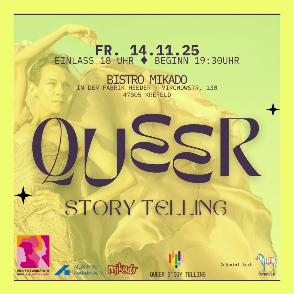 Dieses Jahr findet das Queer Story Telling im Bistro Mikado in der Kulisse (Fabrik Heeder) statt.