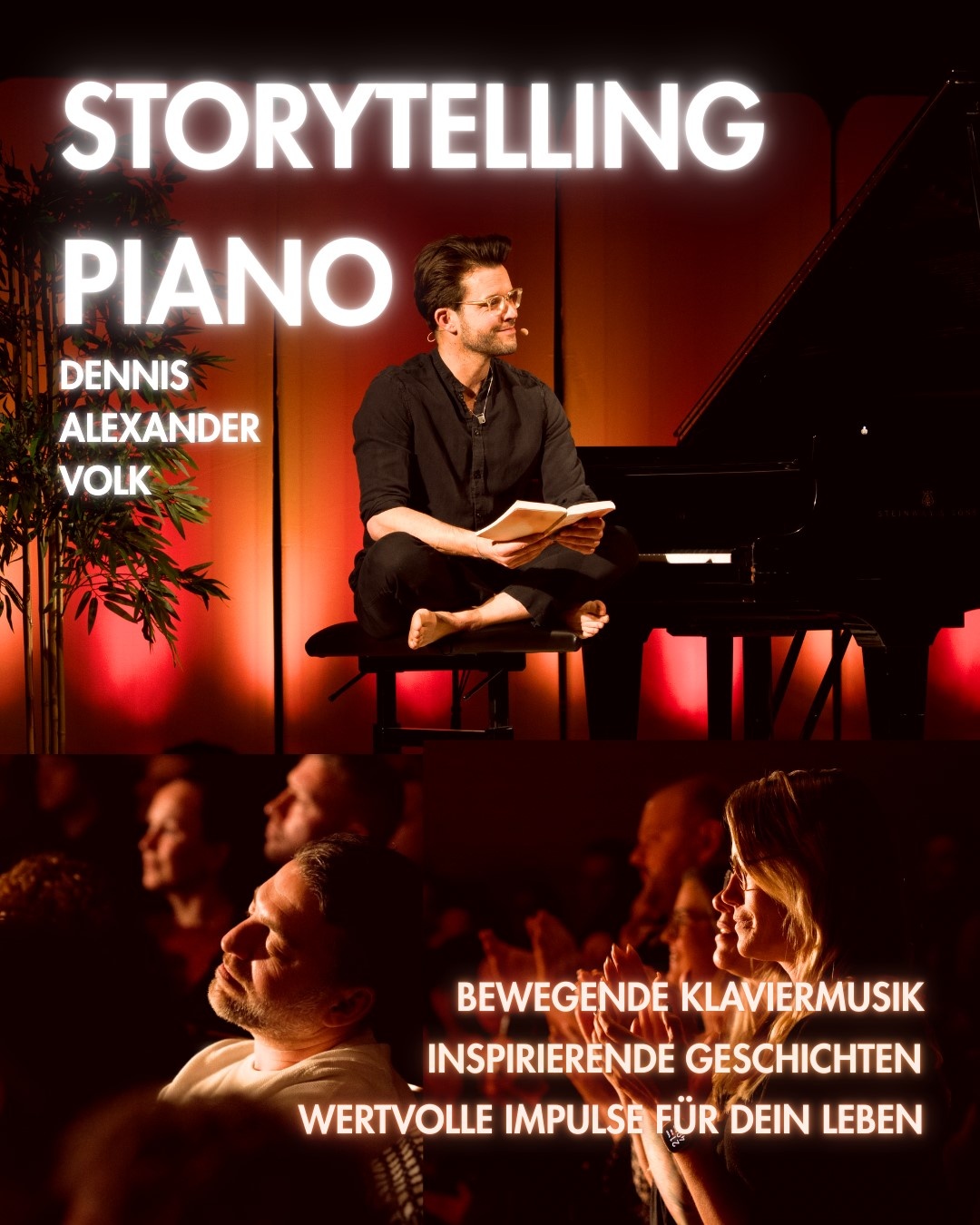 Nach einer restlos ausverkauften Konzertsaison 2024 spielt Dennis Alexander Volk erstmals in Krefeld! Am 18. Oktober 2025 um 19:30h spielt er ein exklusives Konzert im Seidenweberhaus.Dennis spielt mit Inspiration und Leidenschaft Klaviermusik zum Entspannen, bei sich selbst Ankommen und das Leben Zelebrieren.Dauer ca. 130 min. inkl. Pause.Dennis berührt die Herzen der Zuhörer mit seiner heilsamen Musik und regt mit Impulsen aus seinem Buch „Storytelling Piano“ dazu an, das Leben neu zu entdecken.Ein Buch, das auch Dein Leben bereichern wird! Erlebe einen Abend voller Emotion, Inspiration und Energie – und sichere dir jetzt dein Ticket für einen ganz persönlichen Konzertabend. Wir freuen uns auf Dich!