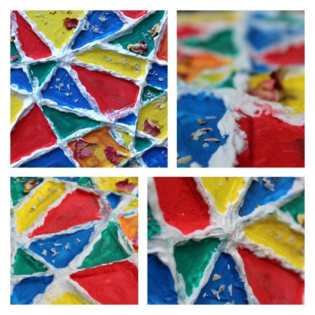 Workshop bunte Reliefbilder für Kinder ab 8 Jahren Mit Gipsbinden, Fingerfarben, Glitzer aus Sand und getrockneten Blumen stellen wir fröhliche bunte Reliefbilder her. Für diesen Workshop solltest du einen Malkittel