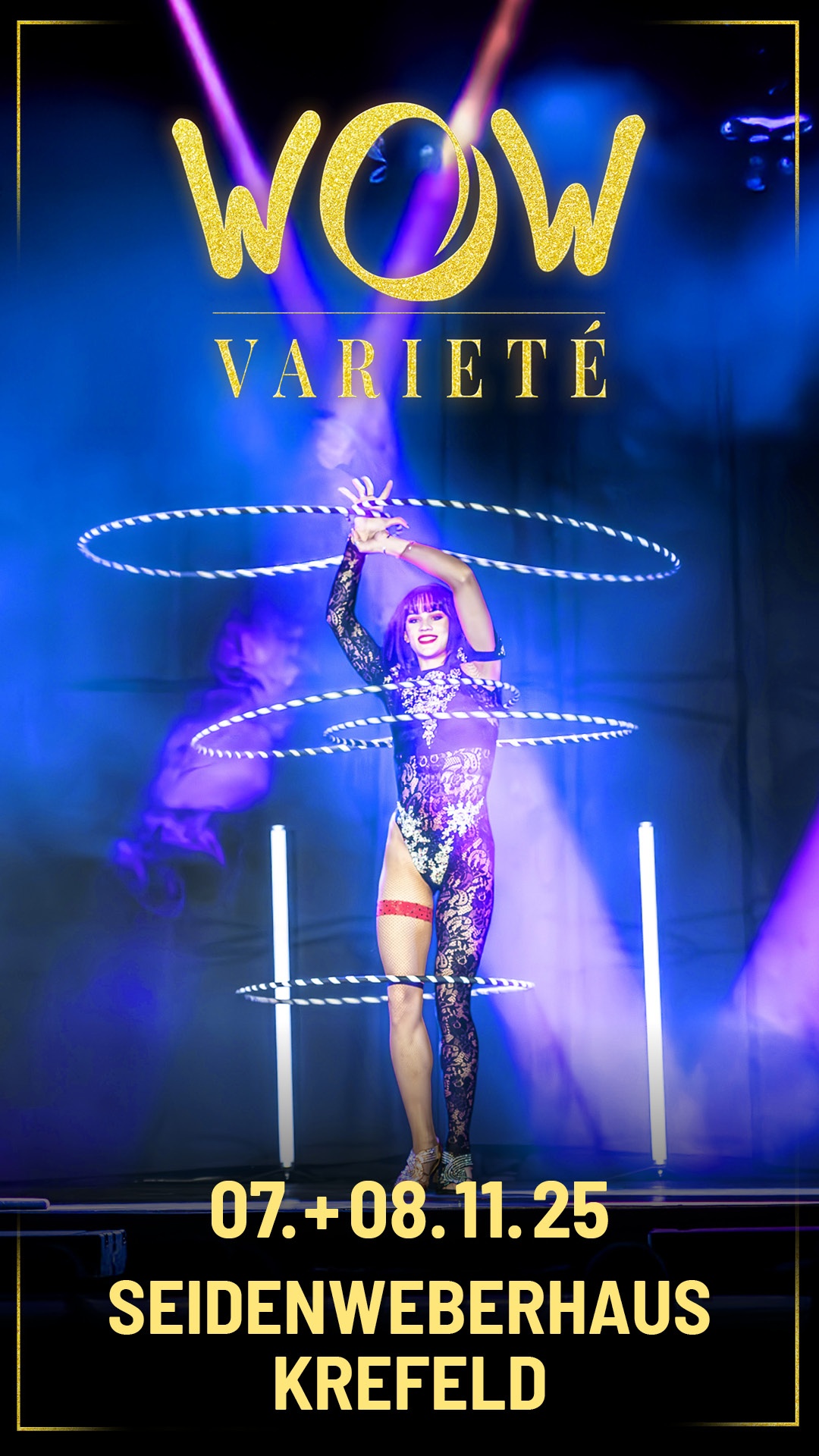 Tauchen Sie ein in die atemberaubende Welt des "WOW Varietés"! Das WOW Varieté ist erstmals in Krefeld am 07.+08.11.25 im Seidenweberhaus! Freuen Sie sich auf preisgekrönte internationale Künstlerinnen und Künstler, die Ihnen das Beste aus der faszinierenden Welt der Artistik, Comedy und Zauberei präsentieren. Sichern Sie sich jetzt Ihre Tickets für eine unvergesslichen Show voller Magie, Humor und erstklassiger Unterhaltung im Seidenweberhaus Krefeld!
